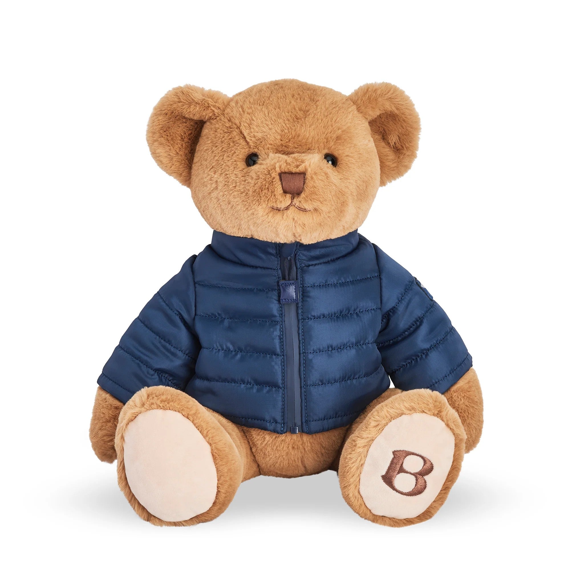 Beautifully soft to the touch, our Outerwear teddy bear is dressed in a white T-Shirt, with printed branding covered by a cosy padded jacket, featuring the Bentley logo.